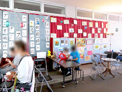 利用者の作品展示に屋台コーナー、物販販売所「キッチンカーRICO」「まゆの店」等の出店もあり大勢の方々と盛り上がりました。