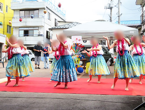 今年のエンゼル祭は、6年ぶりピロティ―での開催でした。オープニングは「アロハ・レイ・ピカケ」さんのフラダンスで盛り上がりました。